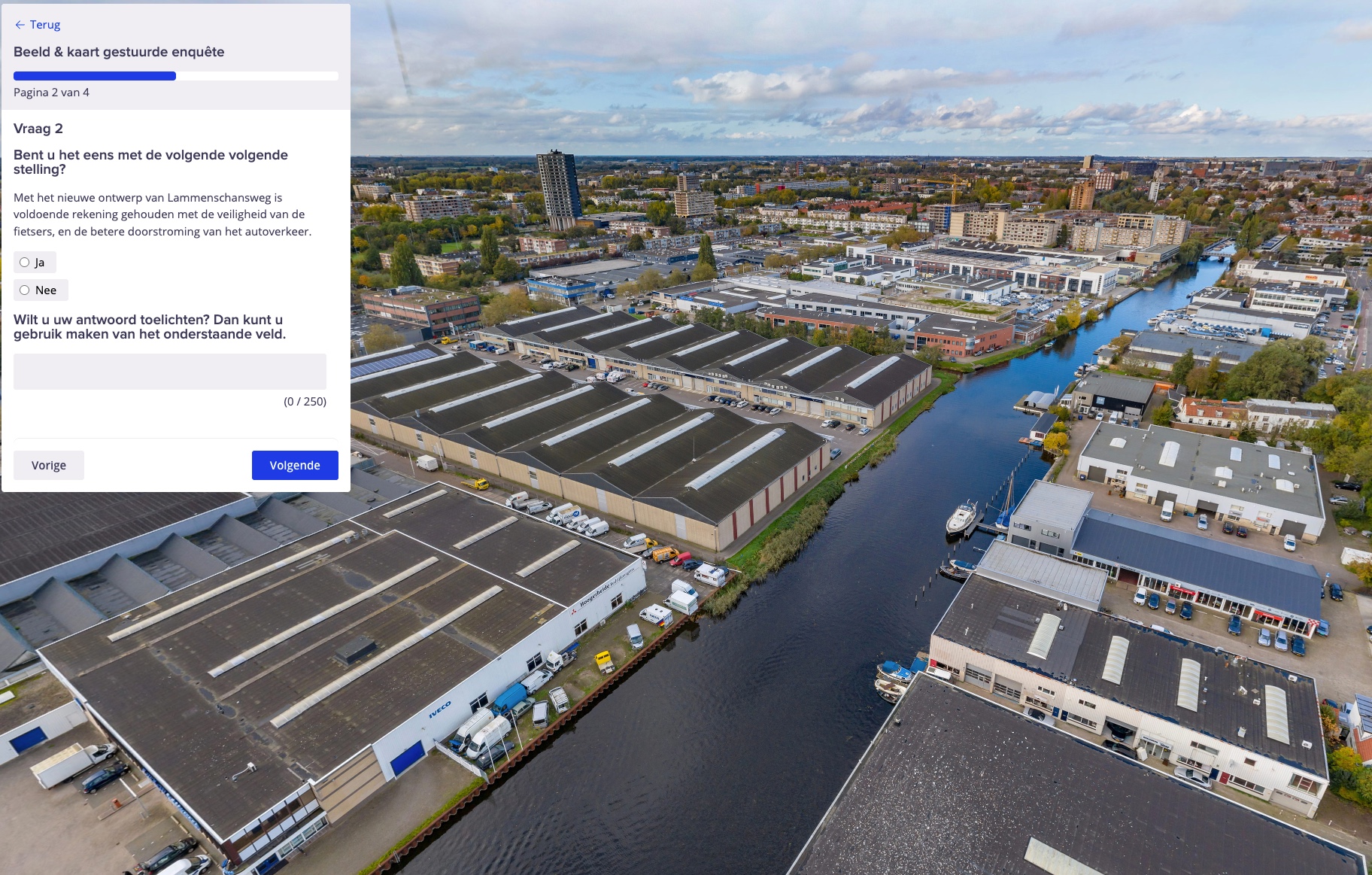Breng interactiviteit en samenwerking naar een nieuw niveau met onze veelzijdige module. Maak gebruik van geo-gerefereerde interacties op een kaart, in een dynamische 3D-wereld of een 360-graden foto. Of je nu op mobiel, tablet of desktop werkt, ons platform is zeer gebruikersvriendelijk en toegankelijk op elk apparaat. Je hebt de volledige controle met een intuïtief dashboard waarmee je zelfstandig enquêtes kunt opzetten en content kunt beheren, zonder technische barrières.