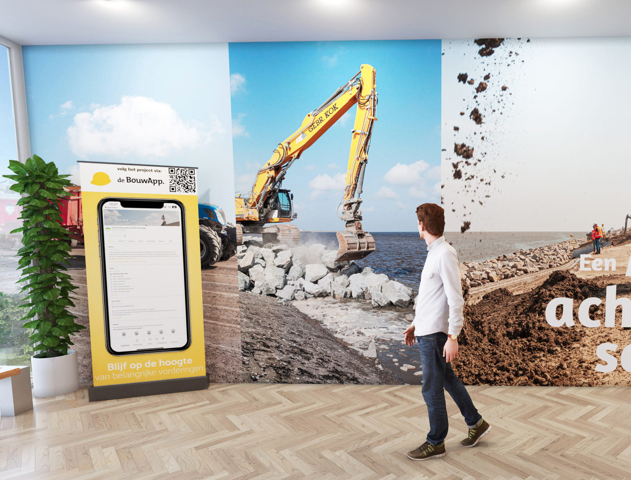 Voor de omgevingscommunicatie hebben wij gebruikgemaakt van een integratie met de Bouw App. Door deze koppeling is het bezoekerscentrum altijd voorzien van het laatste nieuws rond werkzaamheden en mogelijke hinder.